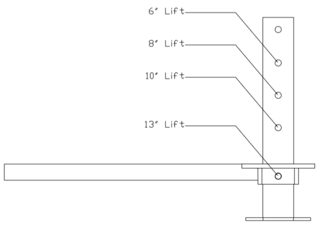 Holes have been placed into the side of the loading pin to allow one of the contest cross-guards to be used with the pin to set a lift to height reference. See bottom of page for detailed setup instructions.